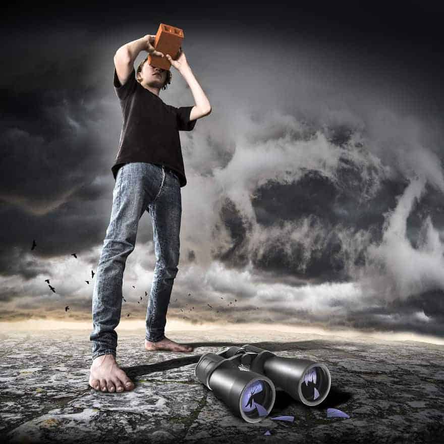 Most of his pieces today involve photo manipulation.