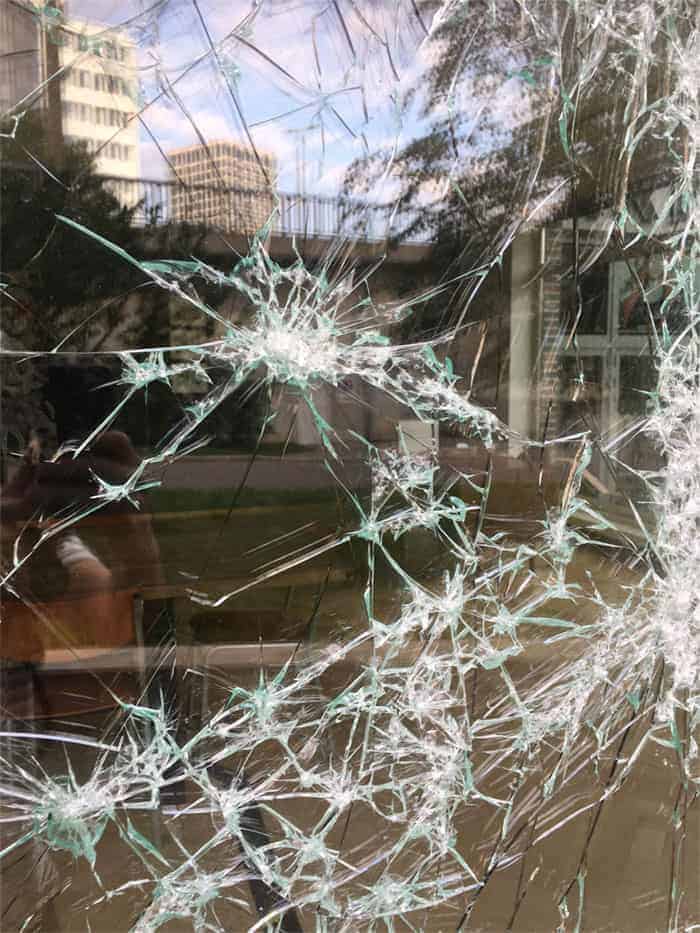 Breaking a perfectly good glass pane to create a realistic image takes the idea of art to the next level.