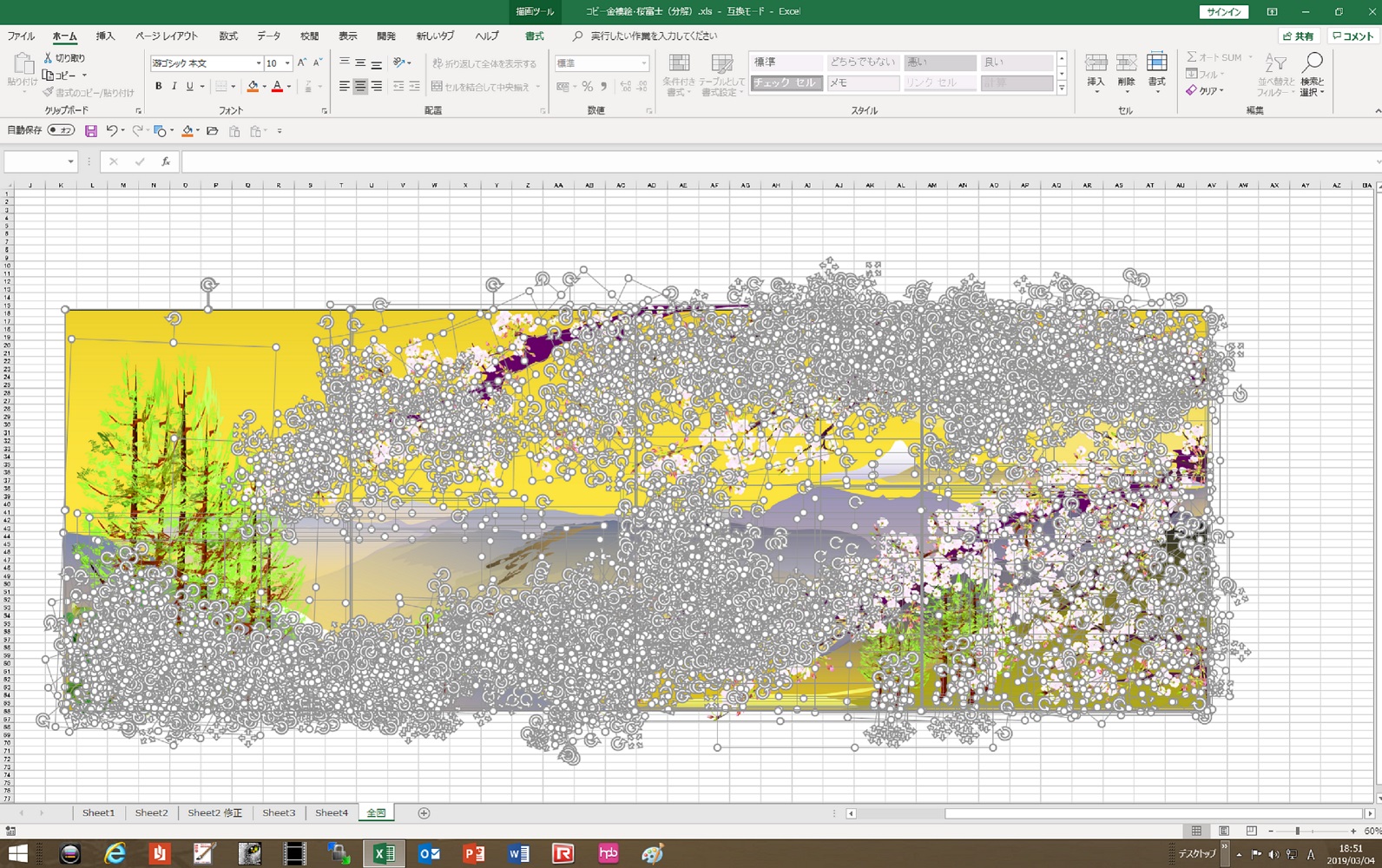 Most of his Excel drawings consists in Japan landscapes which are beautifully rendered by the Microsoft Excel program.